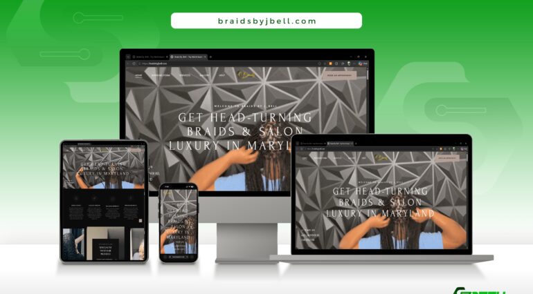 SotehTech designed and developed a sleek, modern website for Braids By J Bell, a premium hair salon specializing in head-turning protective styles, custom braids, seamless extensions, precision cuts, and professional color services in the DMV area.